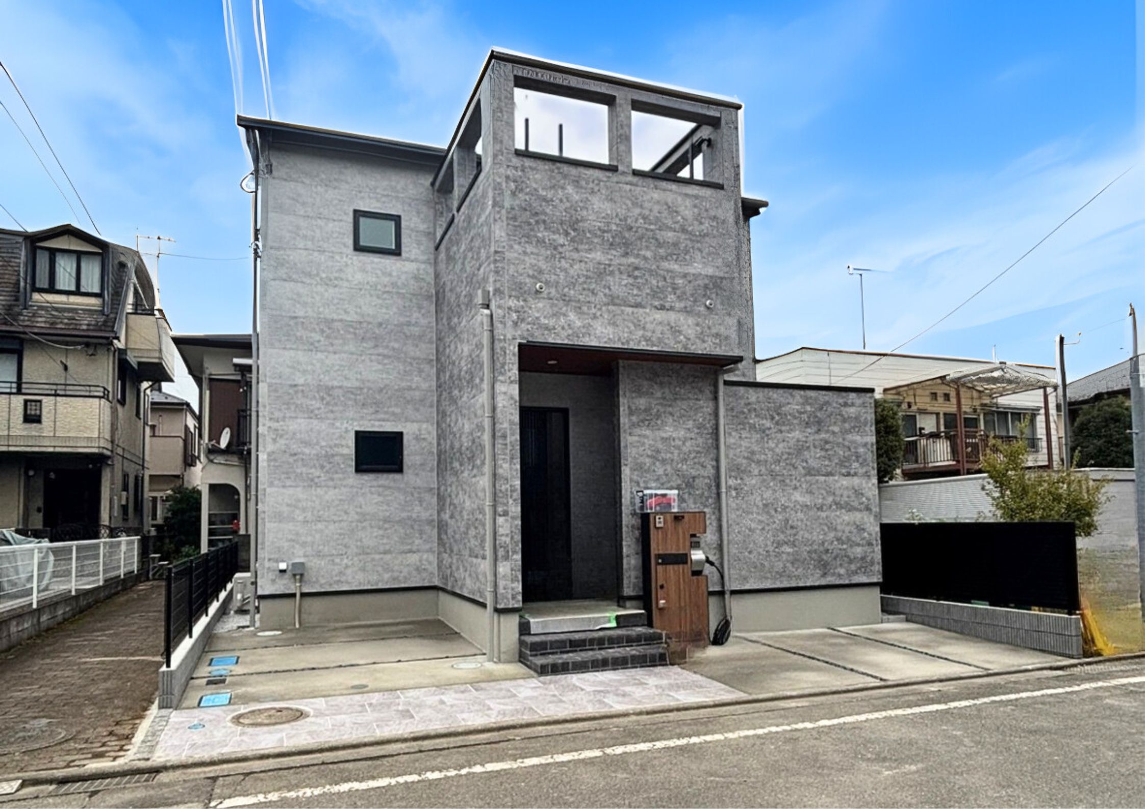 スタイリッシュグレーの外観がひときわ目を引く、デザイン性と快適性を兼ね備えた住まい。
