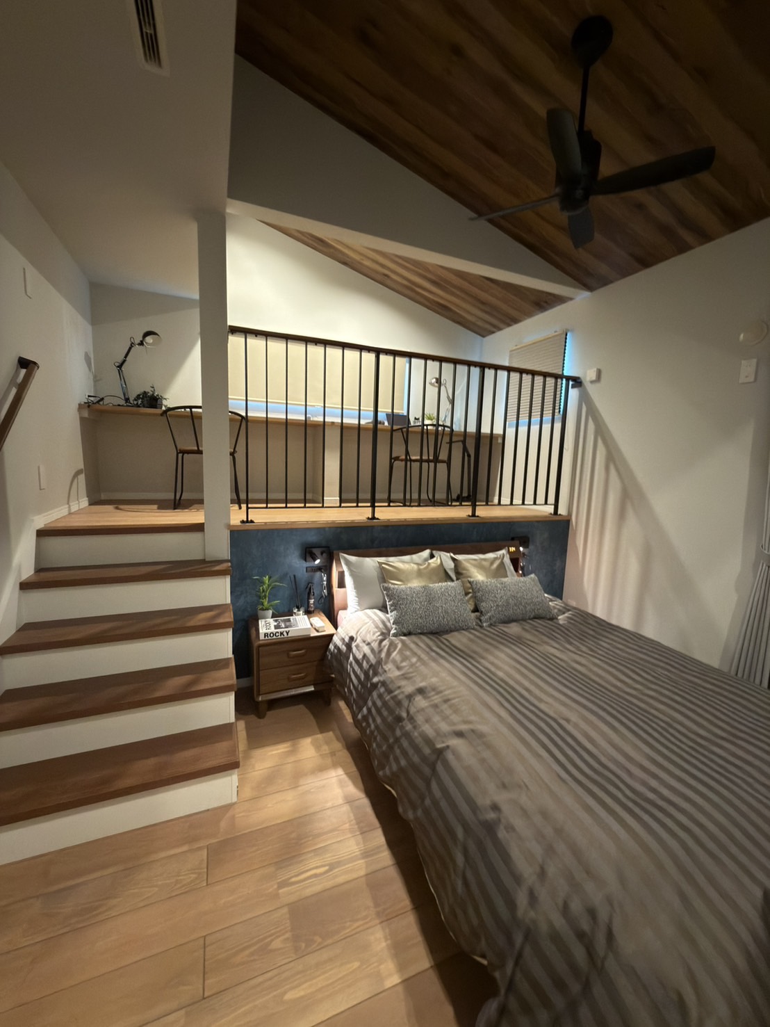 屋根裏には、多目的に使える屋根裏部屋を設けました。趣味の空間としても、子どもたちの遊び場としても自由自在。