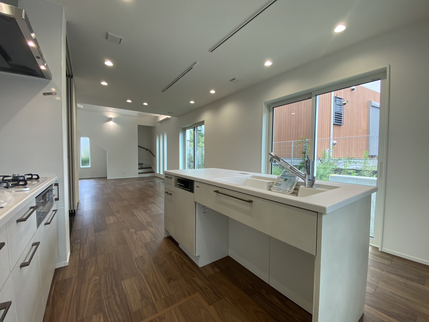 Ⅱ型キッチンは、シンクとコンロを向かい合わせに配置した使いやすいレイアウトで、回遊動線を取り入れることで調理や配膳、片付けま
