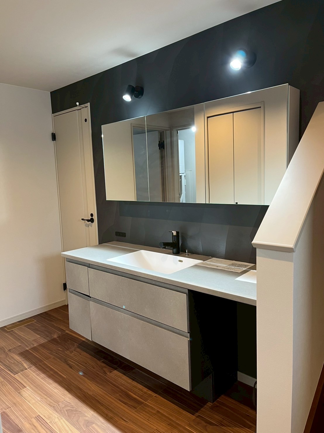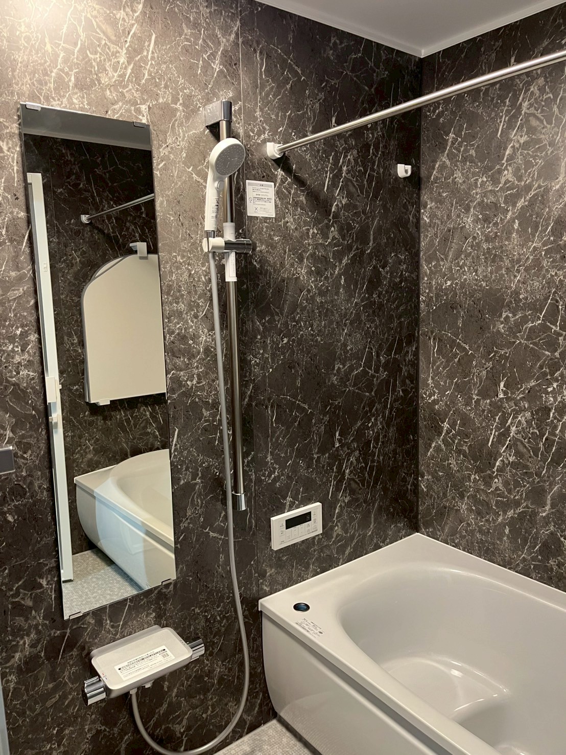 ブラックマーブル調のパネルでホテルライクな雰囲気。