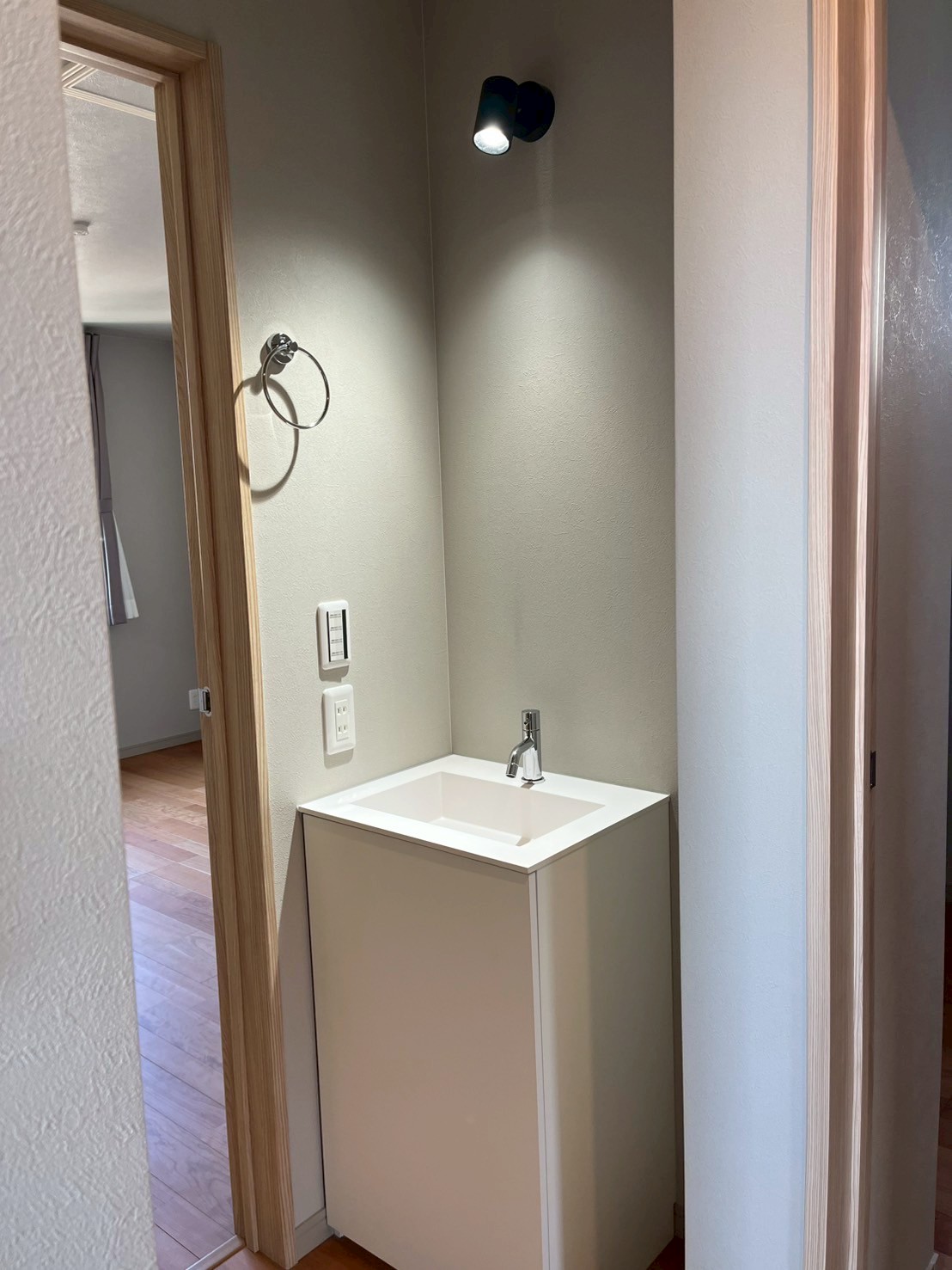 玄関やトイレの近くに配置されたコンパクトな手洗い。
