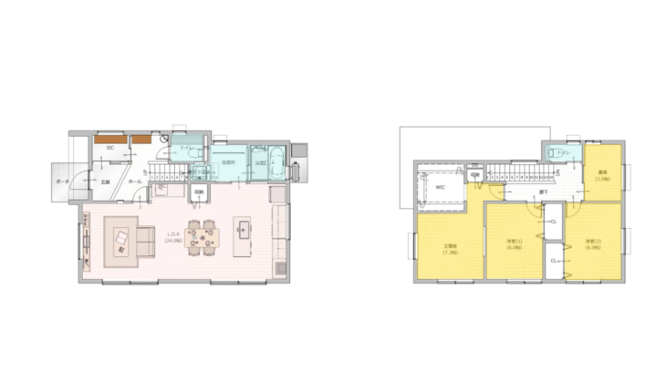 | 2階 | 主寝室、洋室×2、書斎、WIC |