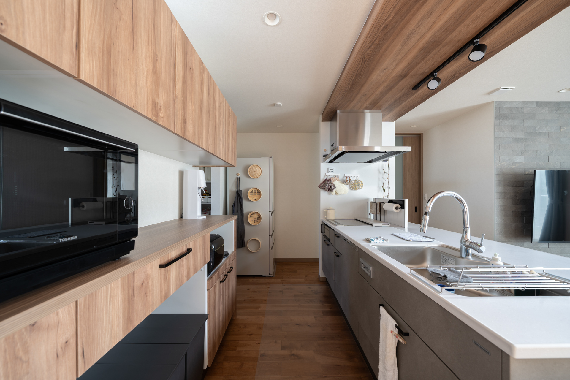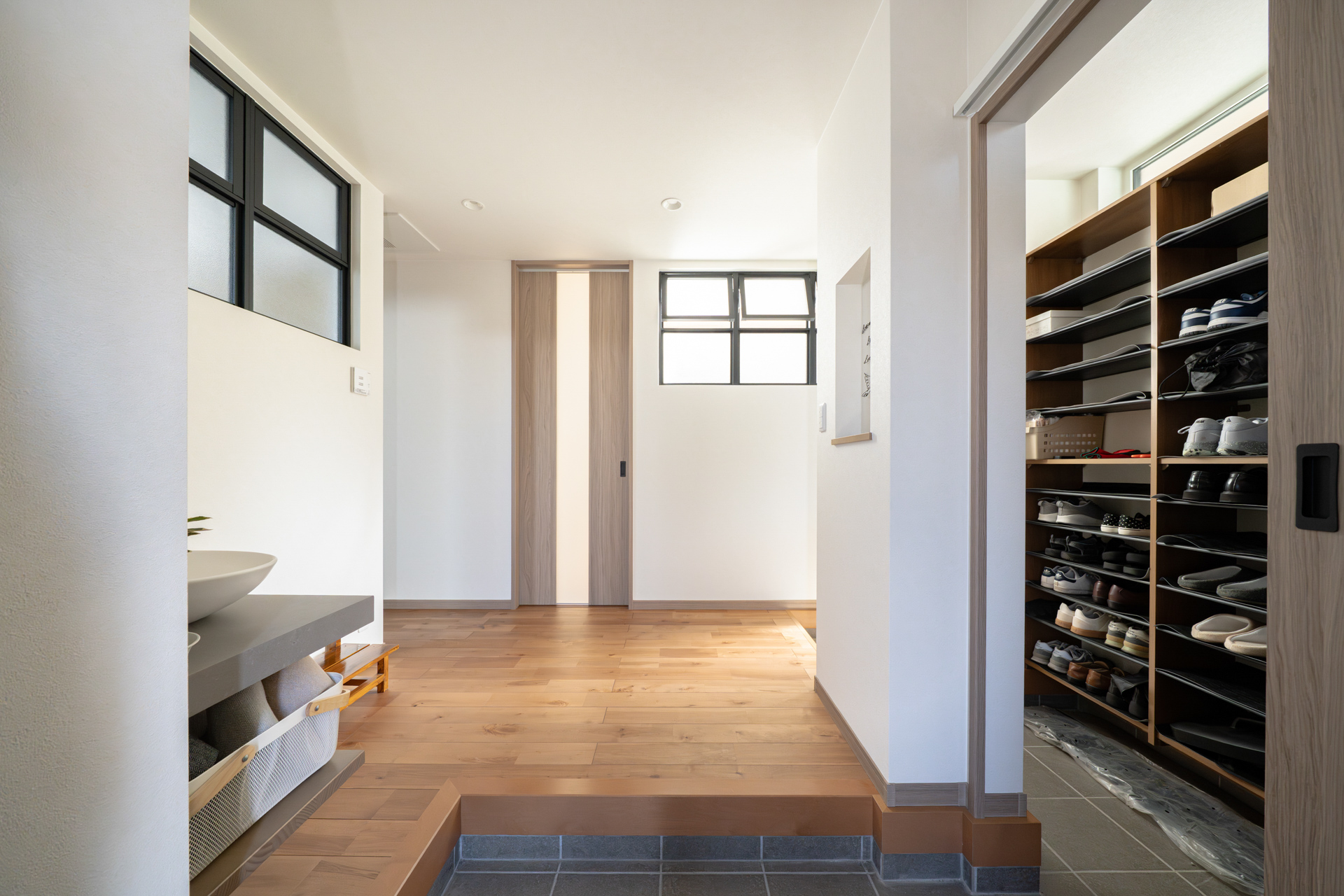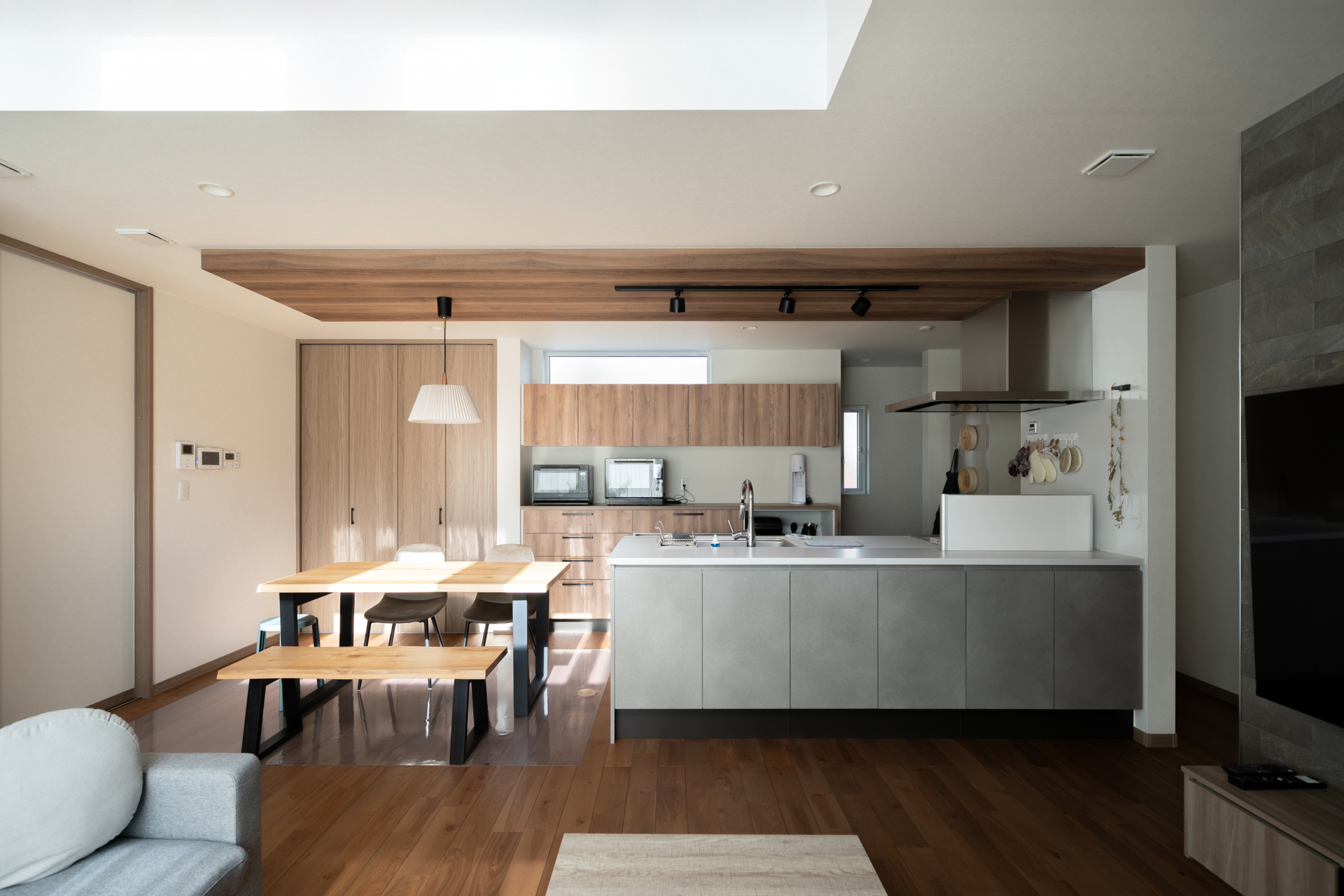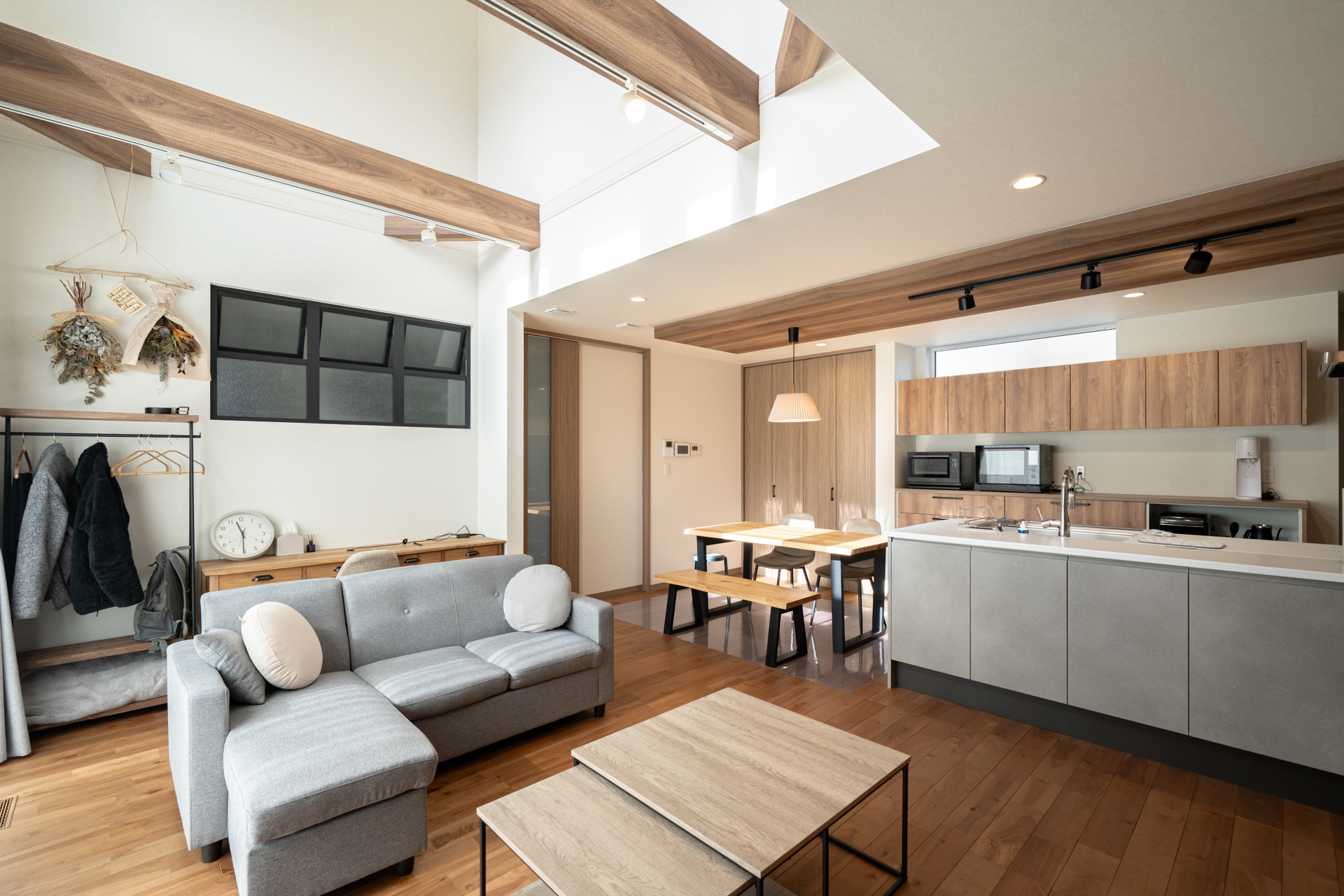 和モダンの外観デザインと、木目を生かしたやさしい色合いのインテリアが調和し、