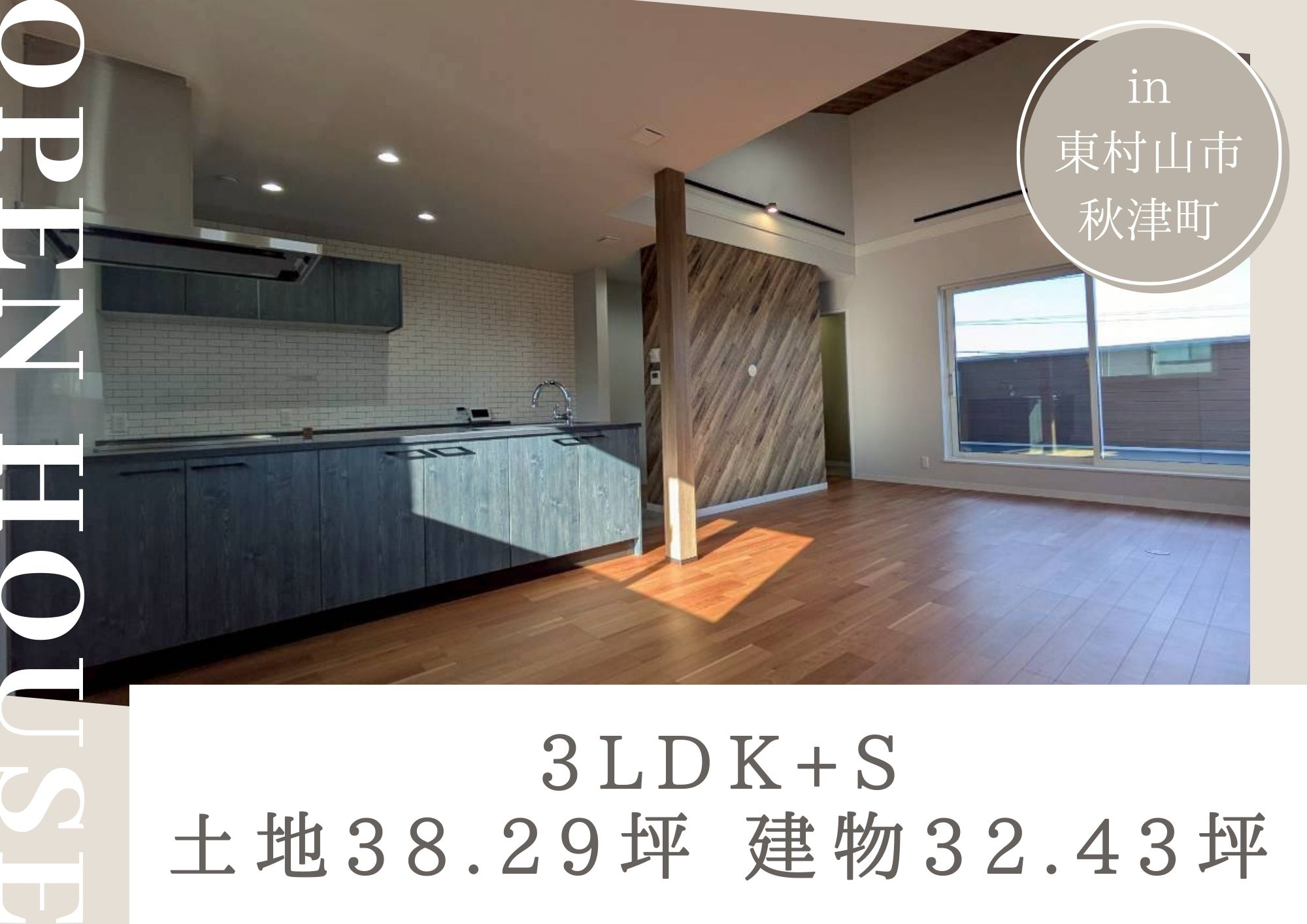 開放感あふれる吹き抜けの2階リビングに、アカシアの無垢フローリングが映えるこだわりの空間。自然素材の温もりと光が満ちる、心地よい住まい