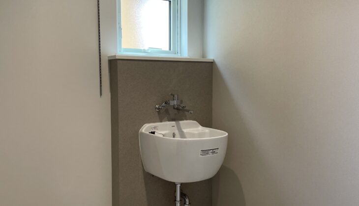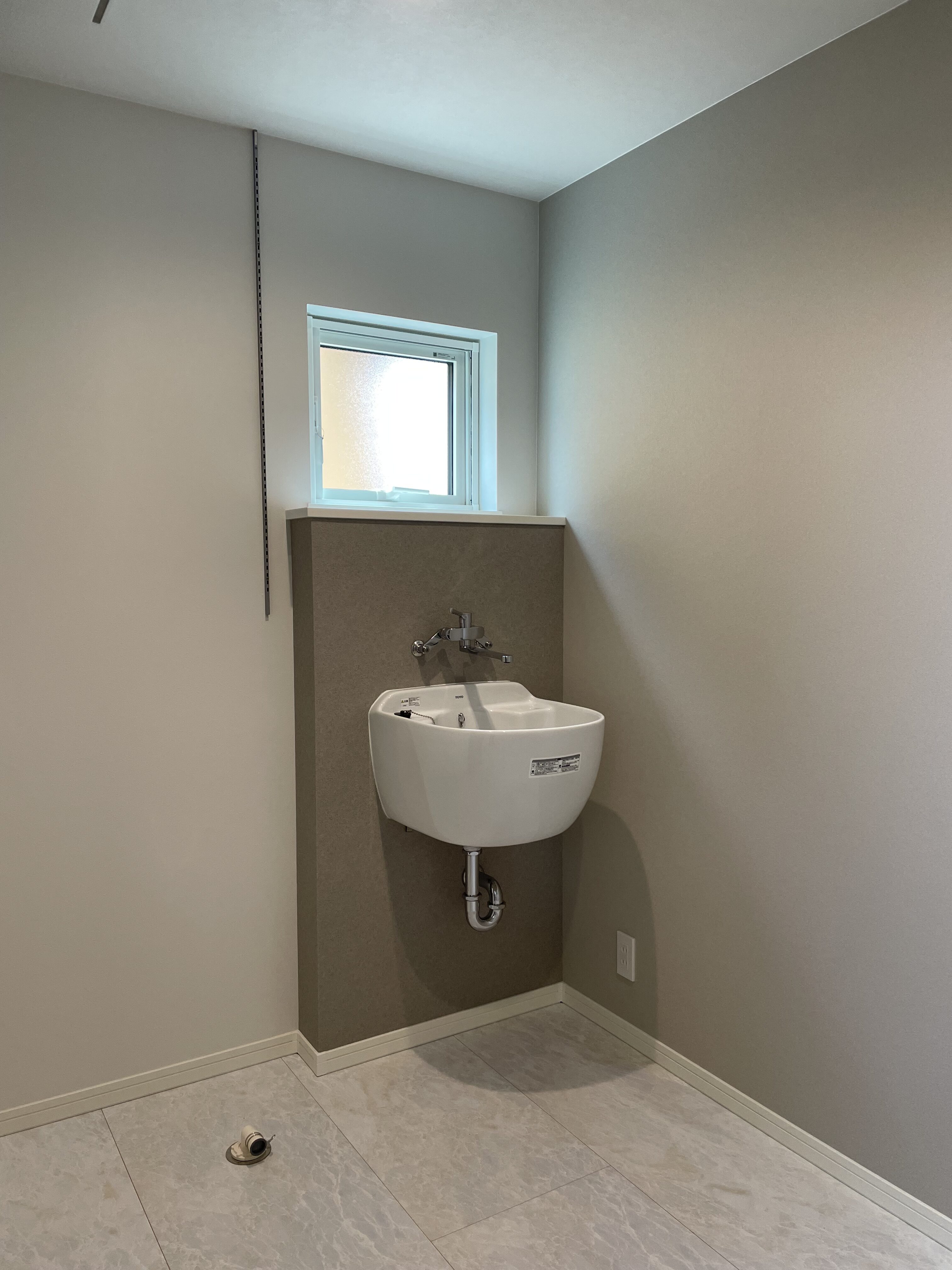 回遊できるキッチンと、スロップシンク付きの洗面が便利な「白基調」のお家。