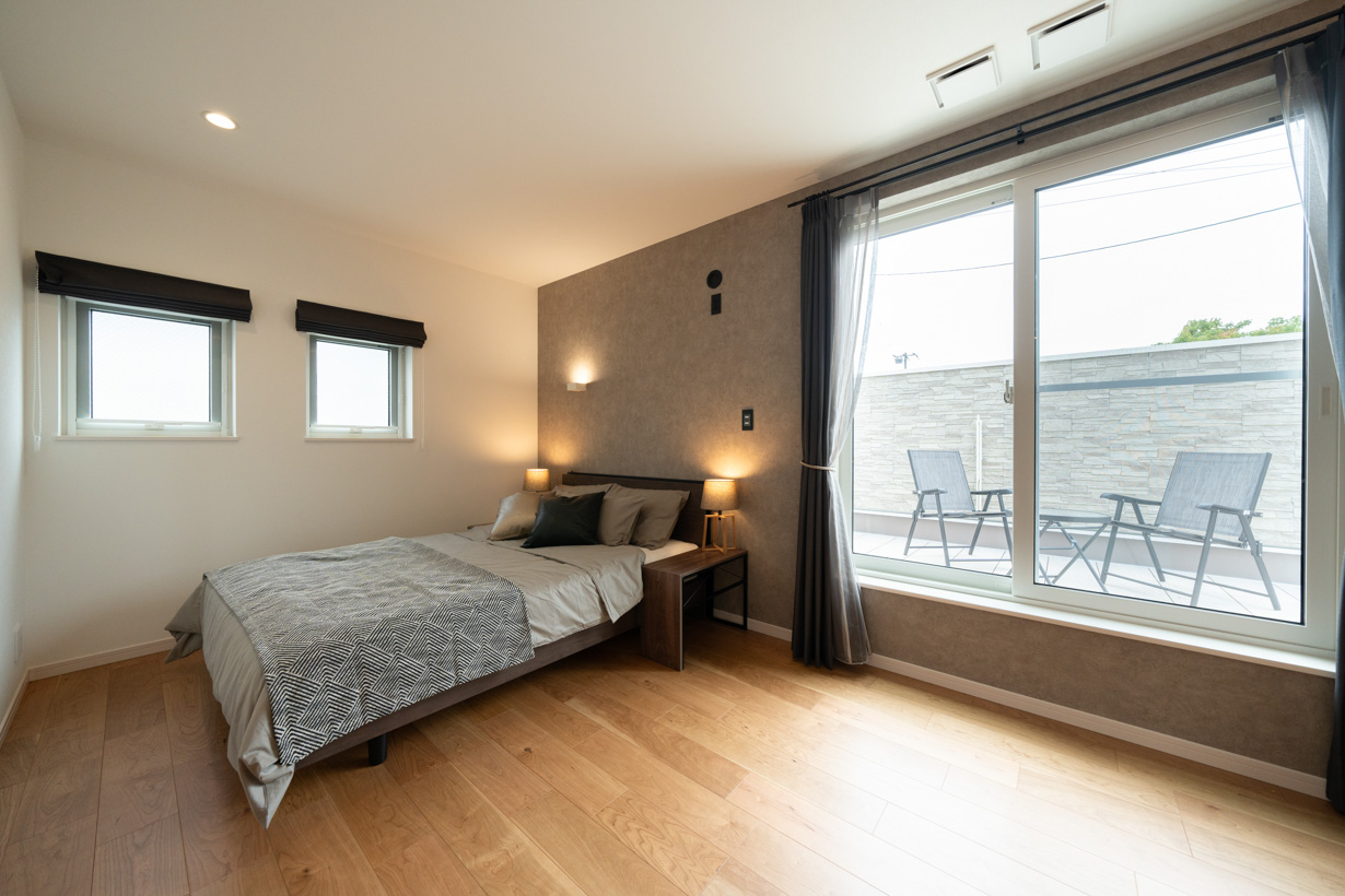 2階にある約8帖にも及ぶバルコニーは友人を招いてBBQをしても優雅にくつろぐことが出来ます。 -