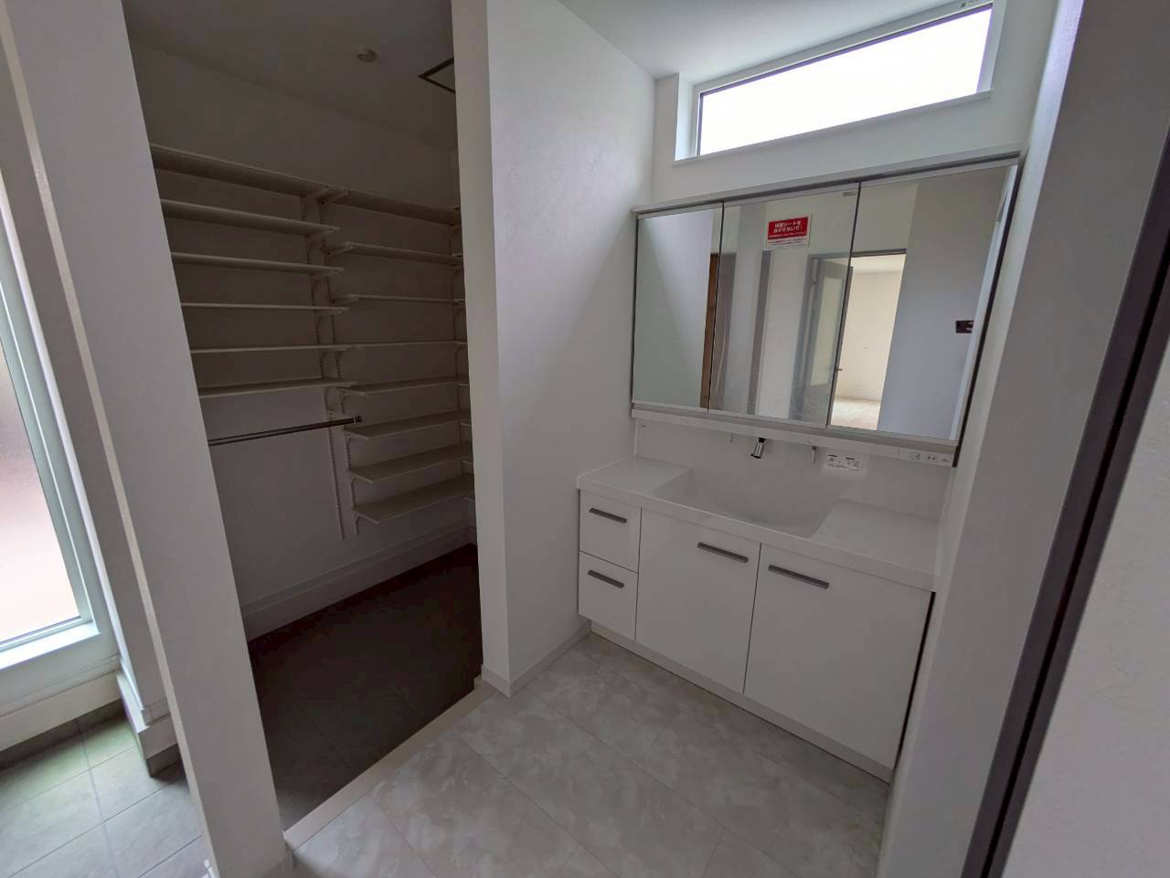 玄関横には1.5帖のシューズインクロークを配置し、ここから直接洗面室に入れるため帰宅後の手洗いが自然に習慣になる間取りです。