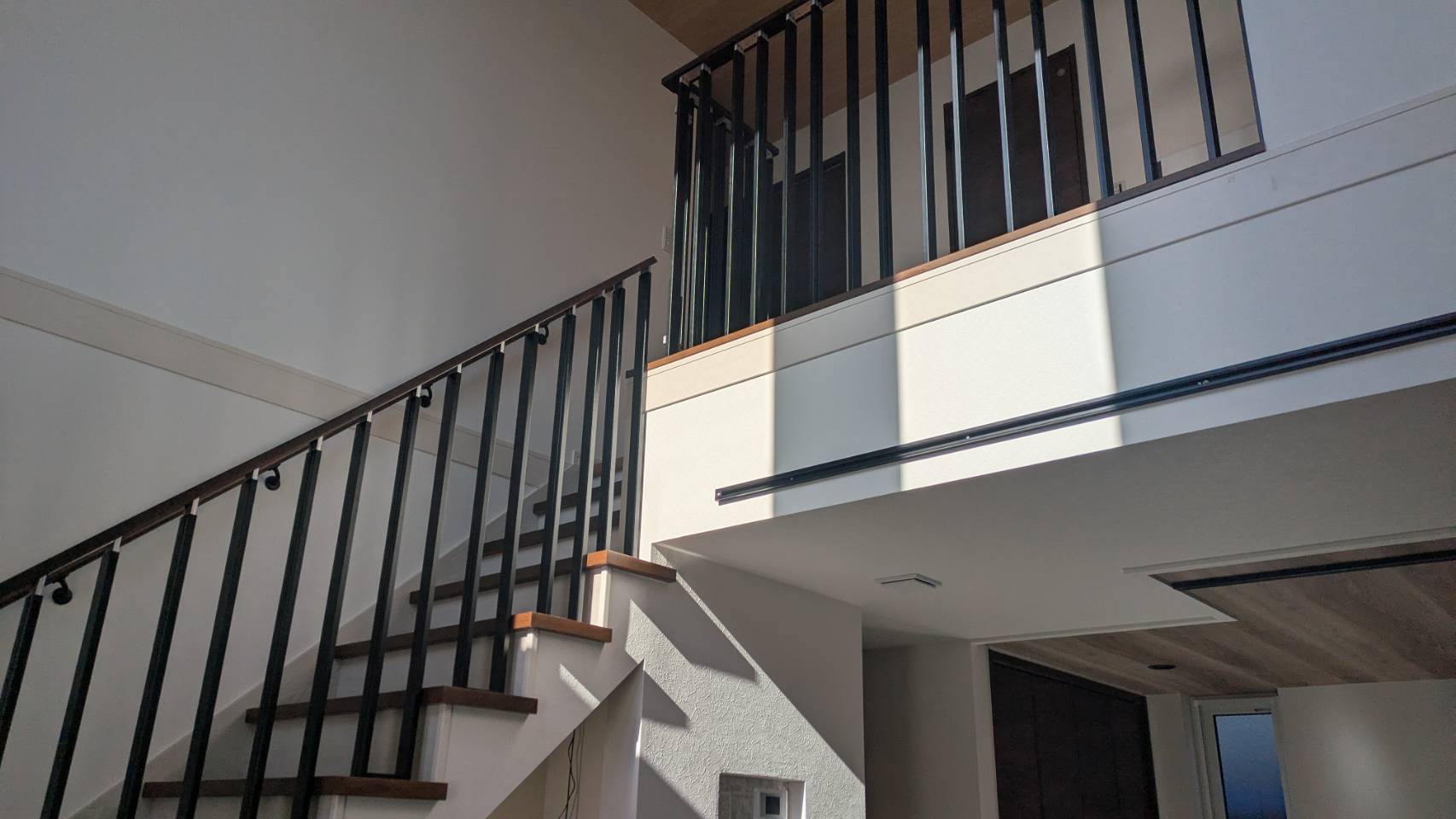 吹き抜けと窓の配置により、自然光が家全体に行き渡る設計。