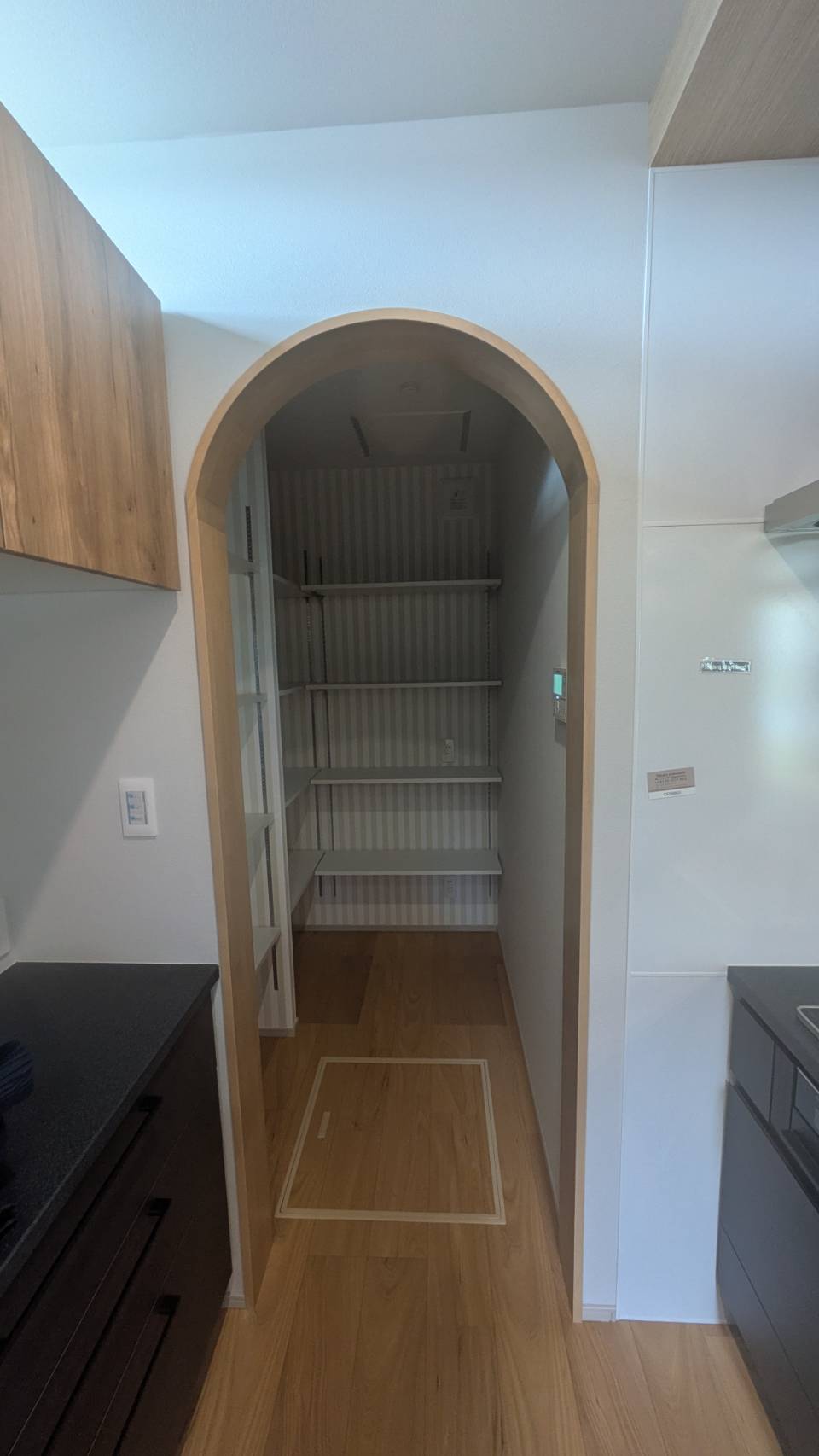 シューズインクローゼットにはじまり洗面室に収納、廊下に固定棚、LDKにも収納+飾り棚、キッチン横に約1.5帖のパントリー