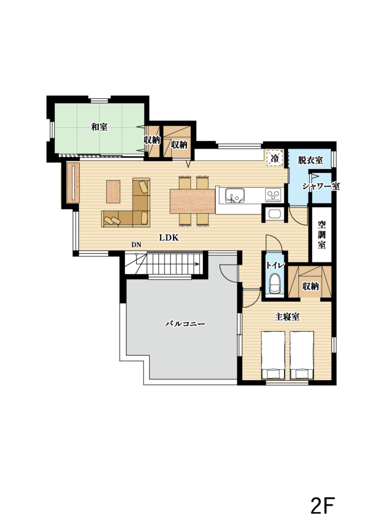 | 2階 | LDK+和室・寝室・シャワー室 |