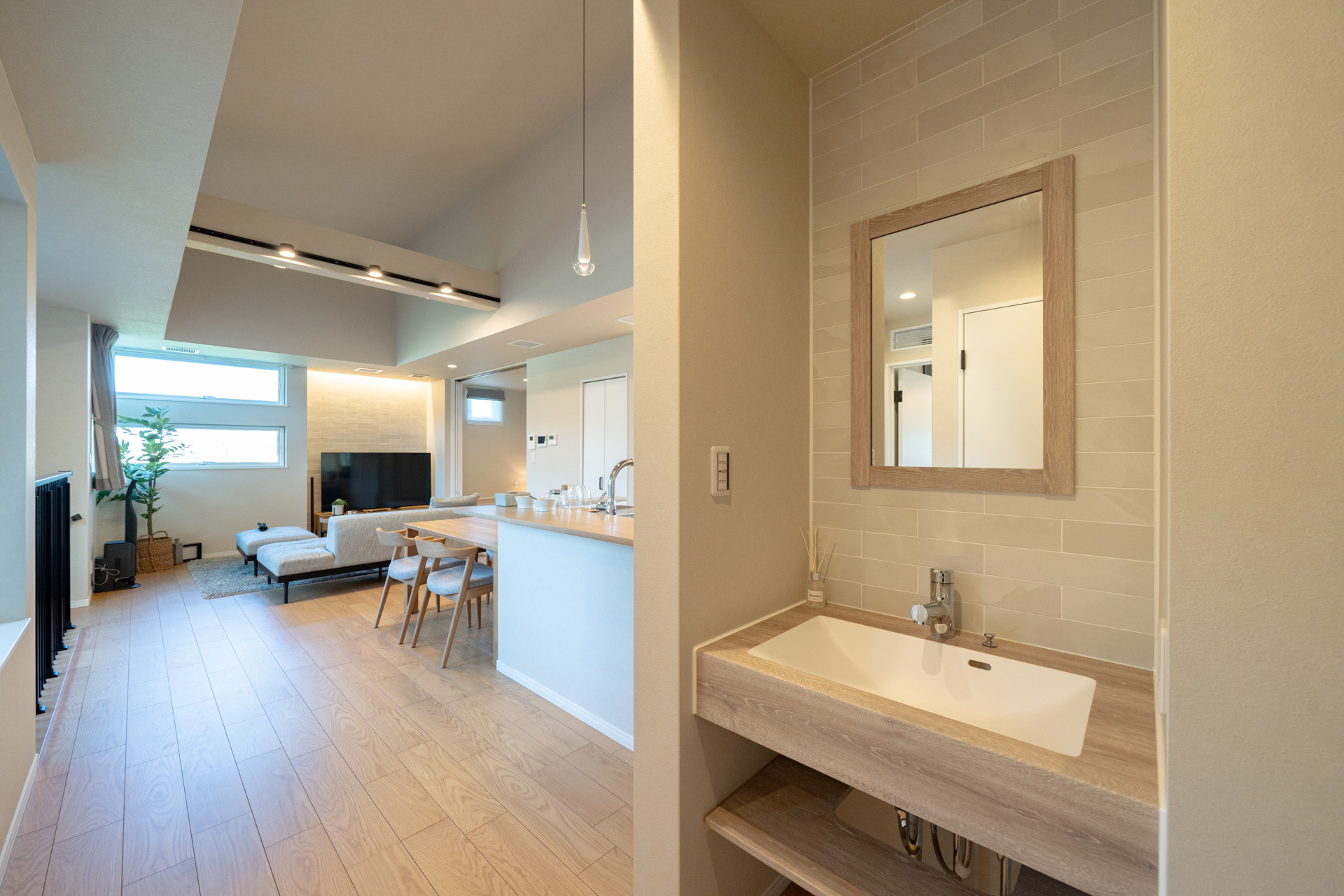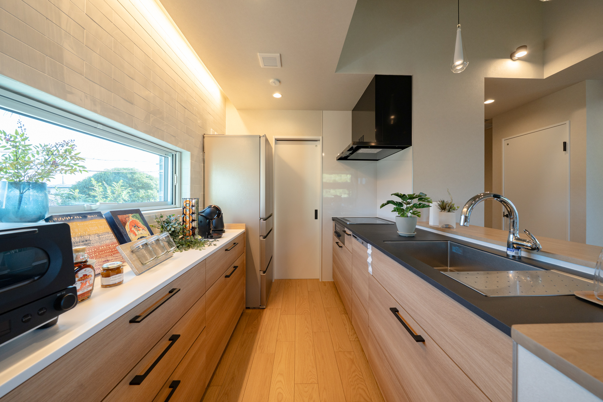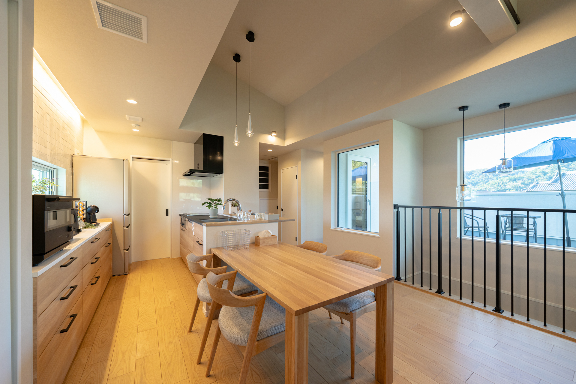 ダイニングテーブルがキッチンのすぐ横にあるので、配膳や片付けがスムーズに行えます。あまり移動することなく食事の準備や片付けができるため、小さな子どもがいる家庭でも安心して作業ができます。