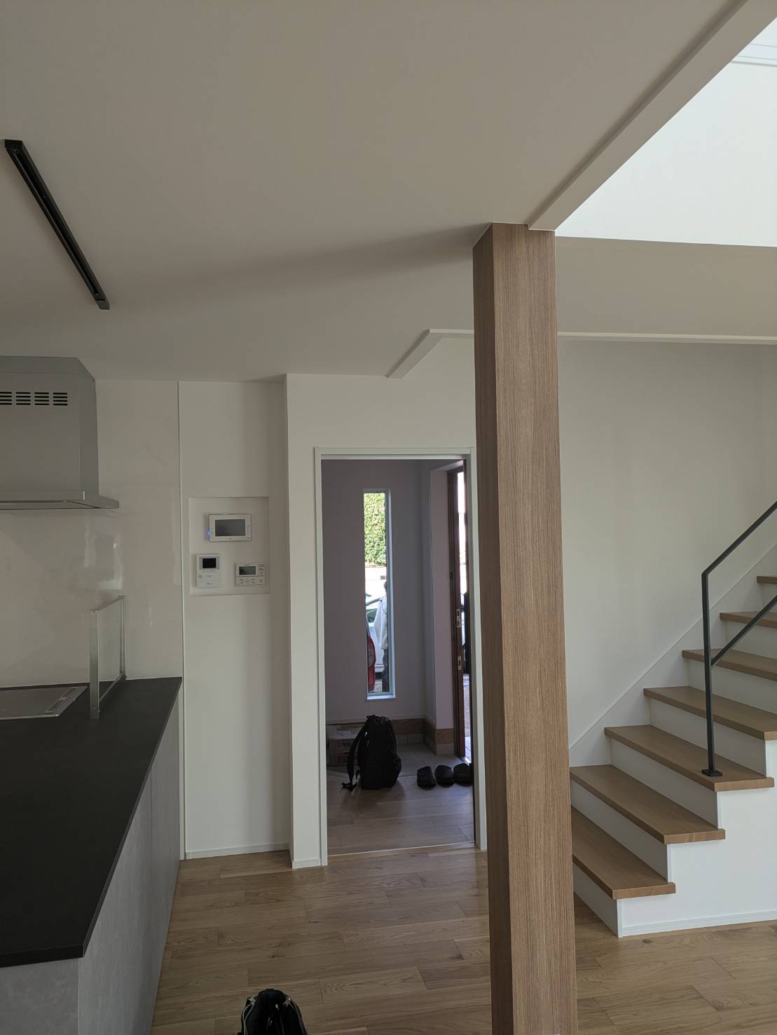 階段がリビングにあることで、廊下を省くことができ、その分、部屋の広さを最大限に活用できます。 -