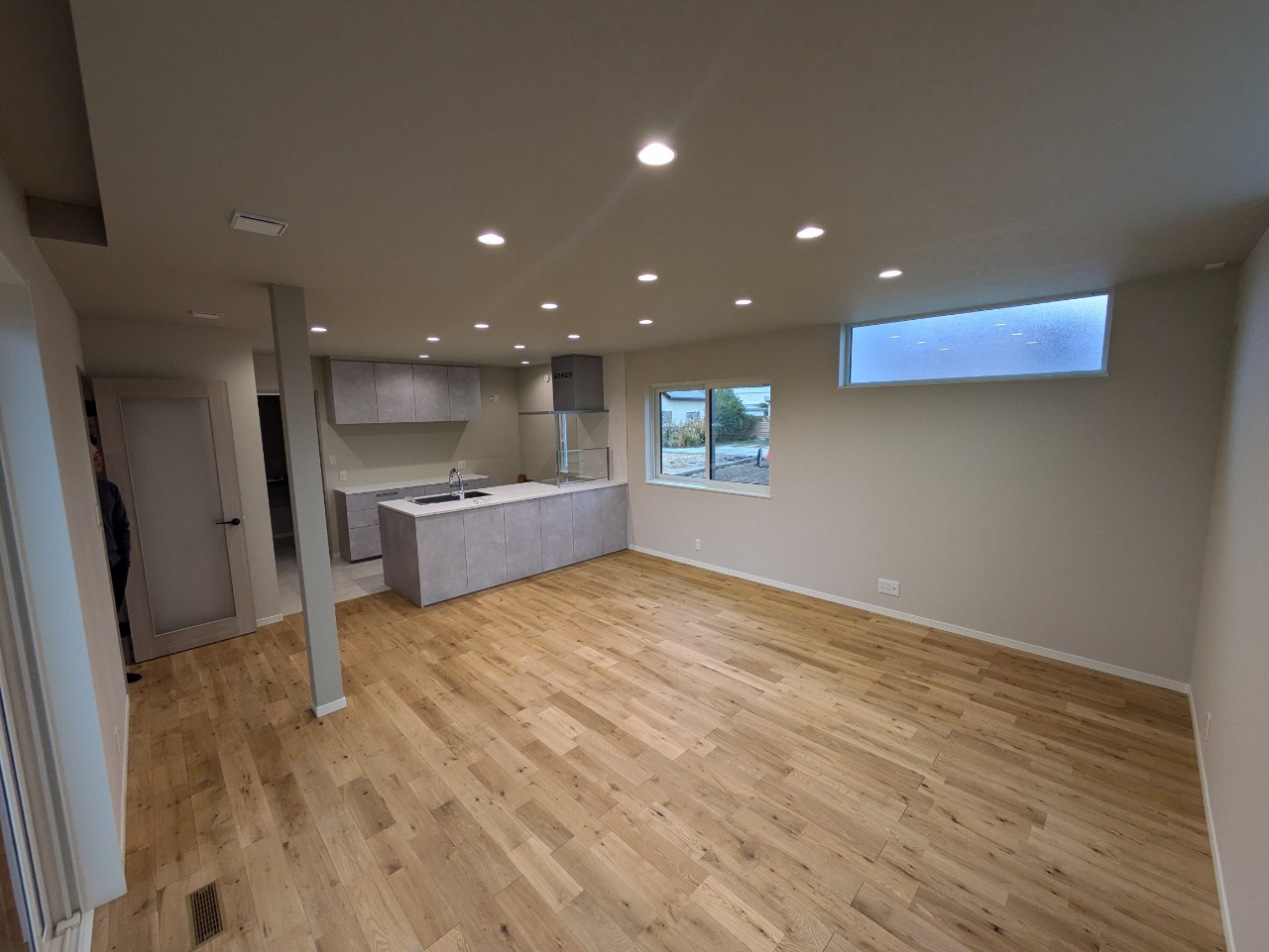 広々としたLDKは、家族が集まる温かな空間です。大きな窓からは自然光がたっぷりと注ぎ込み、開放感を感じながら快適に過ごせます。リビングでくつろぎながら、ダイニングでの食事や団らんも楽しめる場所です。ゆったりとした空間設計が、日々の暮らしに豊かさをもたらします。
