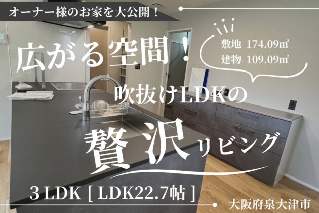 ≪泉大津市池園≫ 33坪/3LDK【広がる空間!吹抜けLDKの贅沢なリビング】(南大阪店)