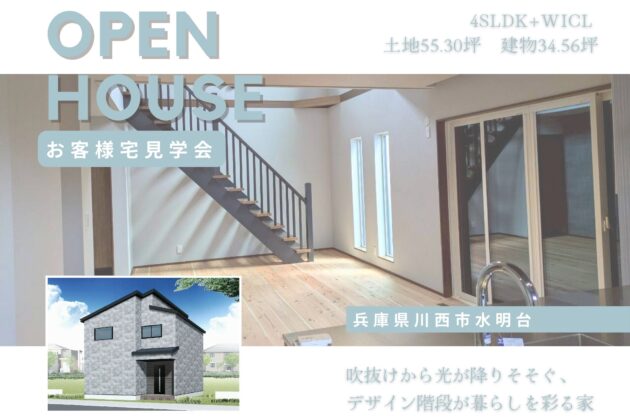 【兵庫県川西市水明台】♦約34.56坪4SLDK+WICL♦吹抜けから光が降りそそぐ、 デザイン階段が暮らしを彩る家<完全予約制お客様宅見学会>(西宮北店)
