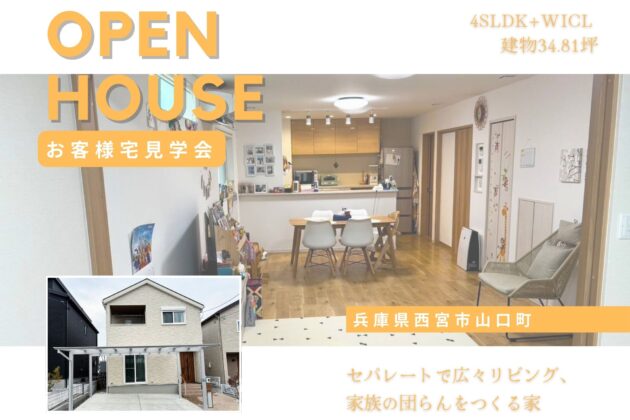【兵庫県西宮市山口町】♦約34.81坪4SLDK+WICL♦セパレートで広々リビング、 家族の団らんをつくる家<完全予約制お客様宅見学会>(西宮北店)