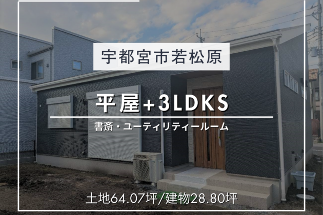 【宇都宮市若松原】書斎と家事室があるスタイリッシュな平屋〈3LDK+S・約28坪〉(宇都宮店)