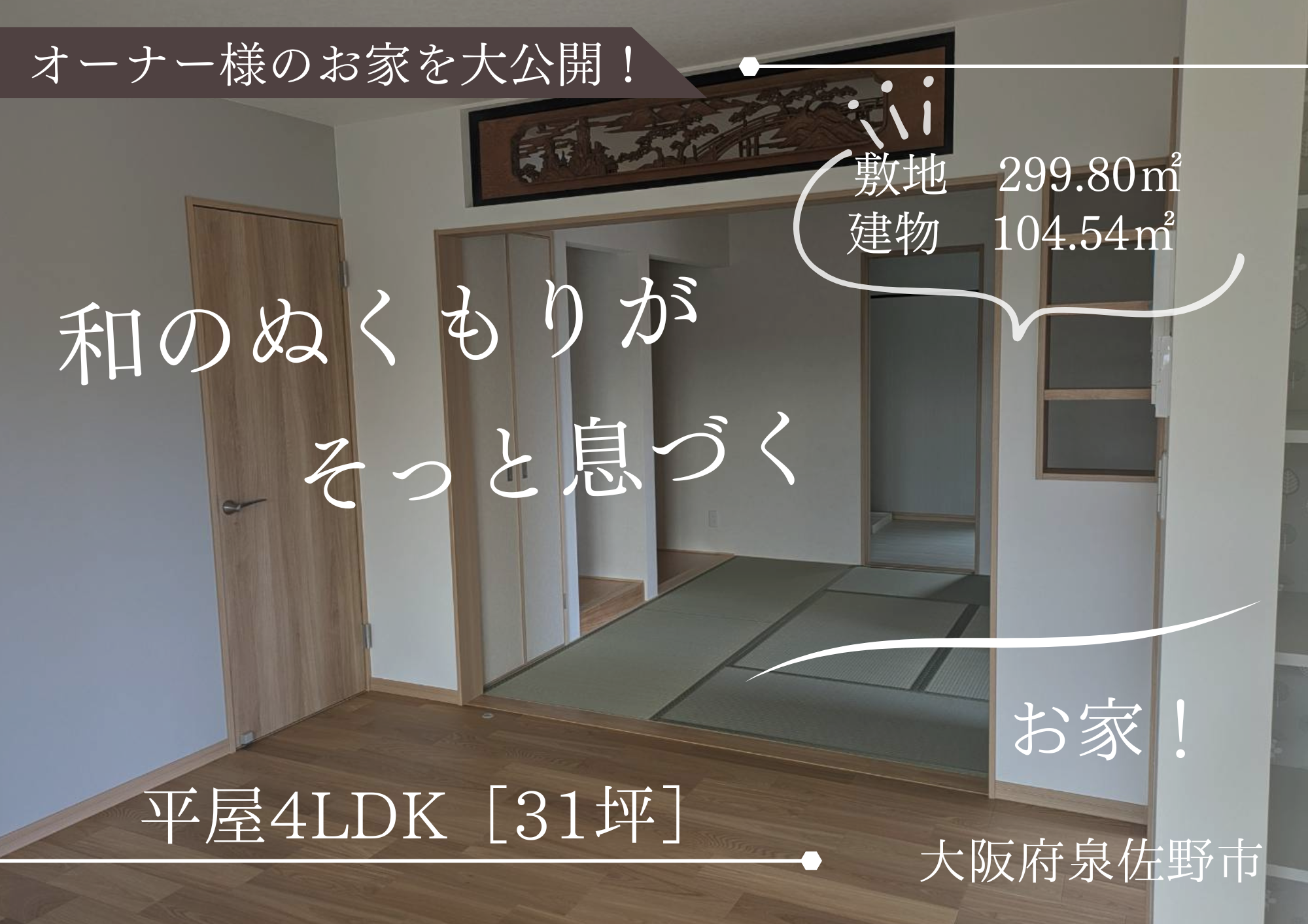 ≪大阪府泉佐野市≫31坪/平屋4LDK【和のぬくもりがそっと息づくお家】(南大阪店)