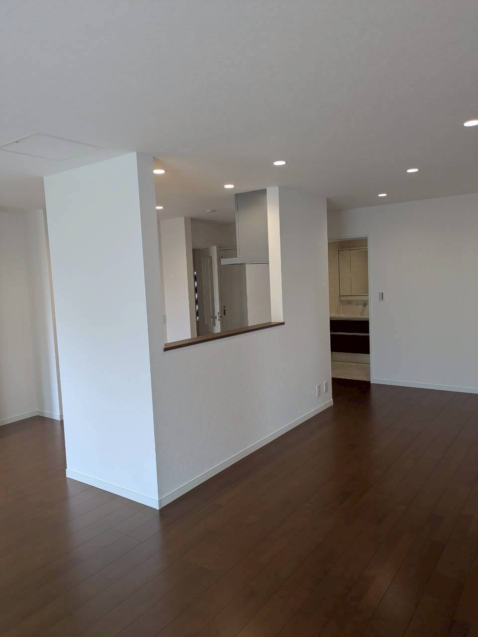 キッチンからダイニング・リビング・和室までが緩やかにつながり、自然と家族の会話が生まれる間取りです。