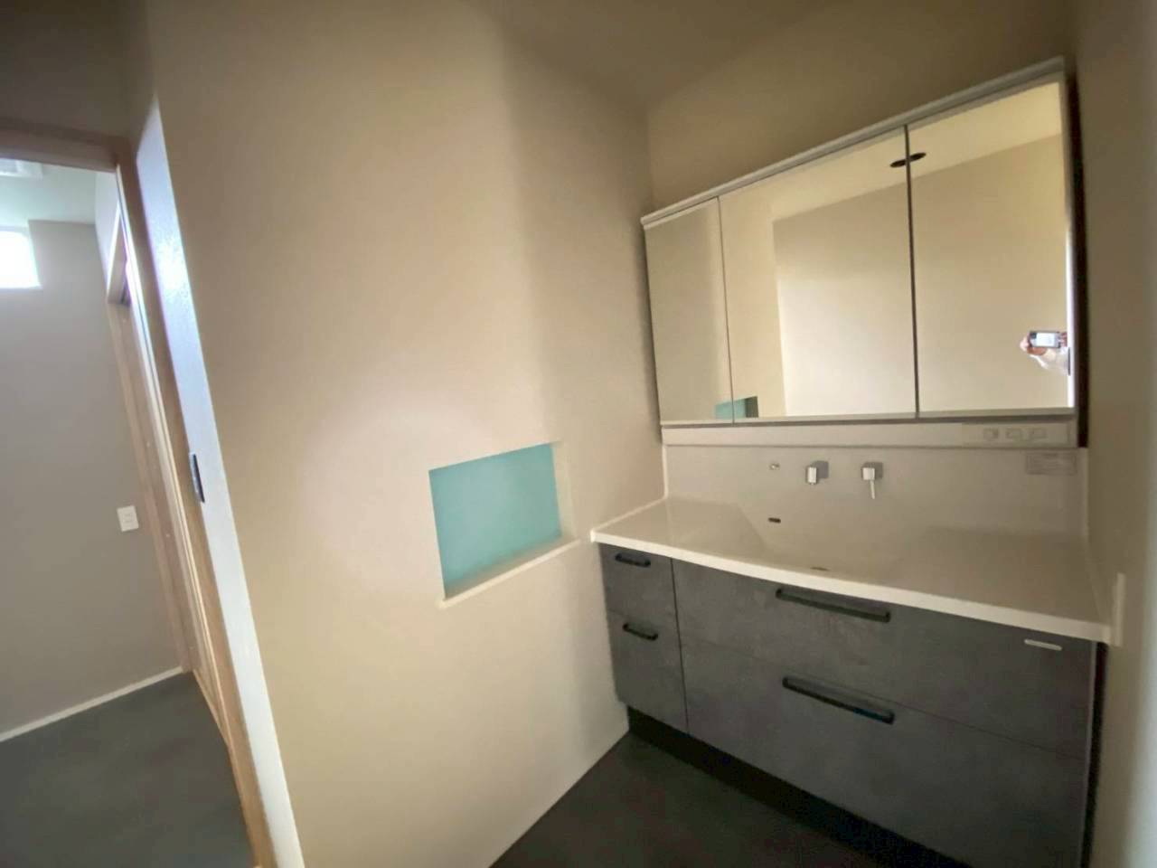 家事動線にもこだわり、キッチンから洗面・浴室へとスムーズにアクセス可能。