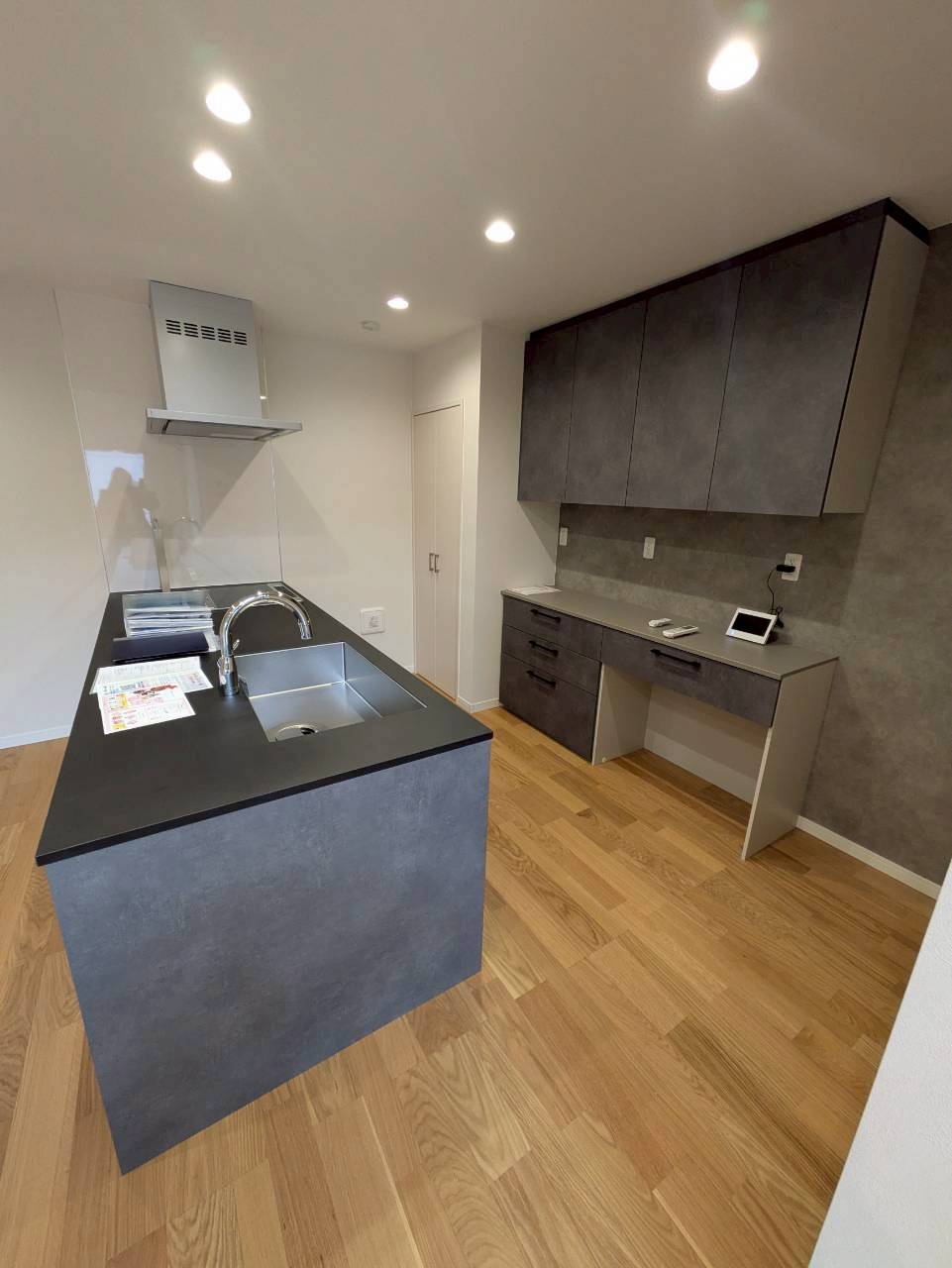 キッチンからリビング・ダイニング全体を見渡せるため、日常の中で家族の気配を感じながら過ごせる住まいです。