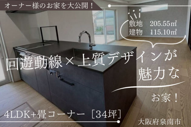 ≪大阪府泉南市≫34坪/4LDK+畳コーナー【回遊動線×上質デザインが魅力なお家】(南大阪店)