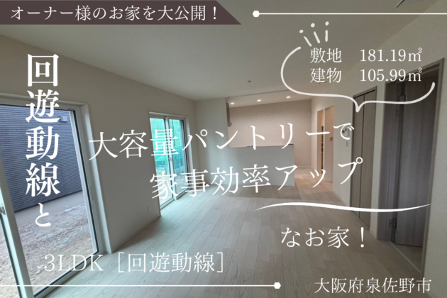 ≪大阪府泉佐野市≫ 32坪/3LDK【回遊動線と大容量パントリーで家事効率もアップ!】(南大阪店)