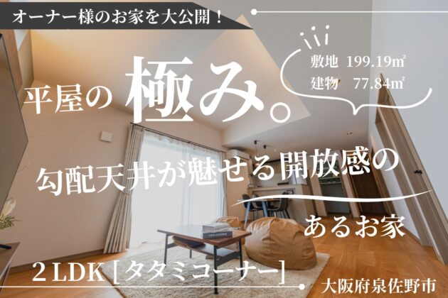 ≪岸和田市東ヶ丘≫ 23坪/2LDK+タタミコーナー【平屋の極み。勾配天井が魅せる開放感のあるお家】(南大阪店)